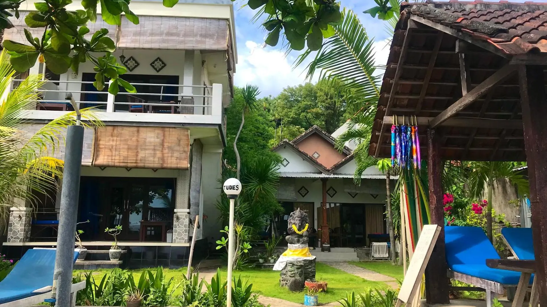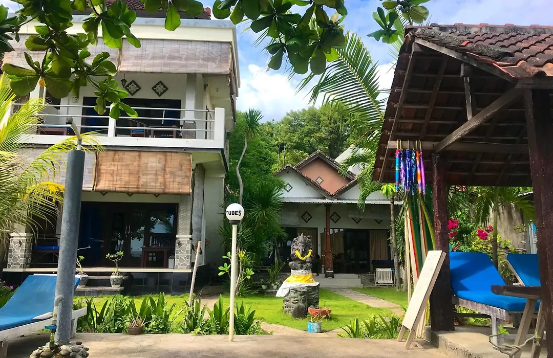 El Tudes Homestay Amed ofrece vistas a las montañas y está frente a la playa ubicado a una distancia de 3 km de la Playa Lipah. Los huéspedes pueden enriquecer su estancia con actividades como esnórquel, submarinismo y piragüismo.